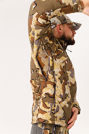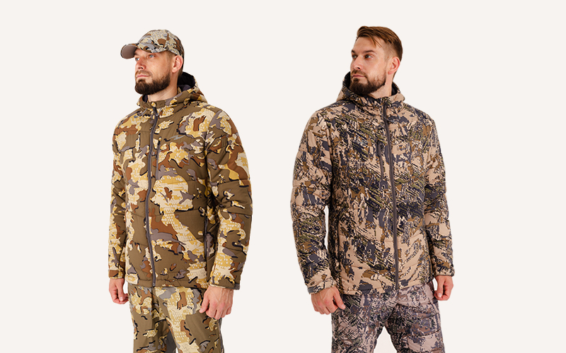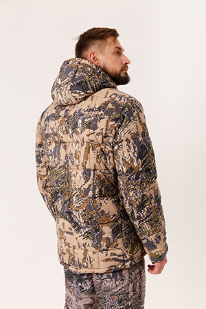 Куртка идет в расцветке «Модерн», идеально подходящей для межсезонья и охоты на водоплавающую дичь. Она гармонично сливается с камышом, горной местностью и другими природными ландшафтами. EPICENTER также можно использовать как дополнительный утепляющий слой под мембранные костюмы King Hunter, такие как Exterior и Storm.