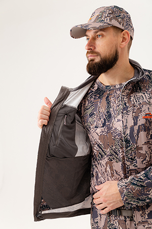 - Бесшумная конструкция исключает шуршание ткани, что особенно важно при охоте.