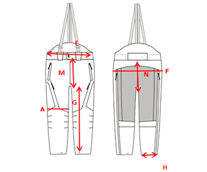 | Ширина низа штанины | H | 23,5/19,5 | 24/20 | 24,5/20,5 | 25/21 | 25,5/21,5 | 26/22 | 26,5/22,5 |