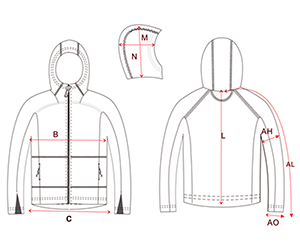 | Высота капюшона | M | 33 | 33,5 | 34 | 34,5 | 35 | 35,5 | 36 | |