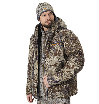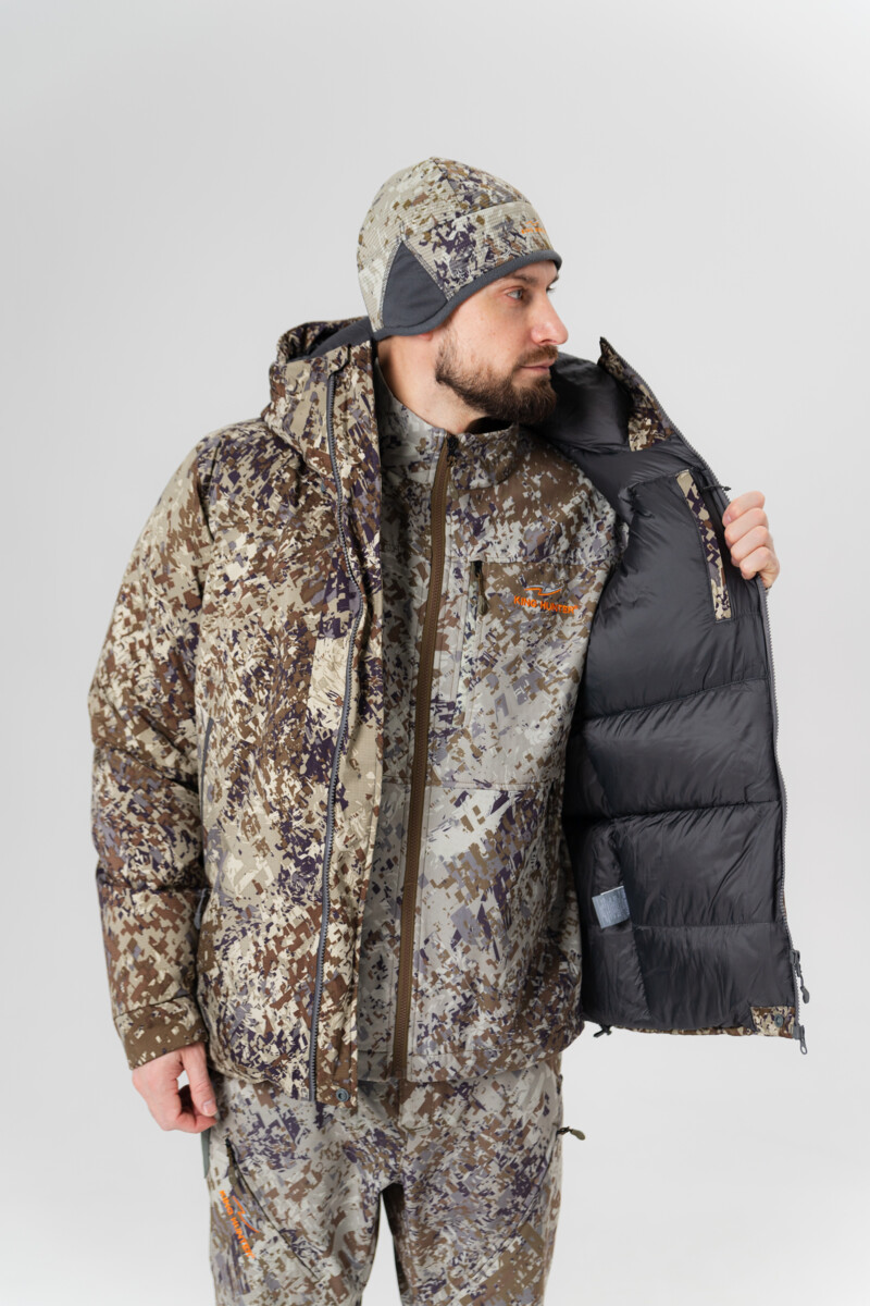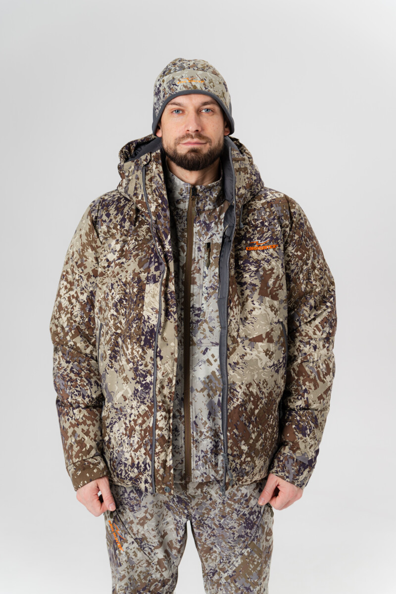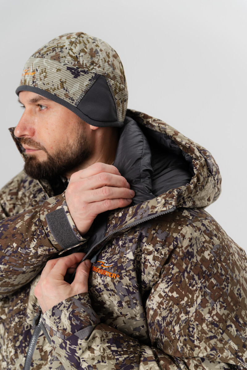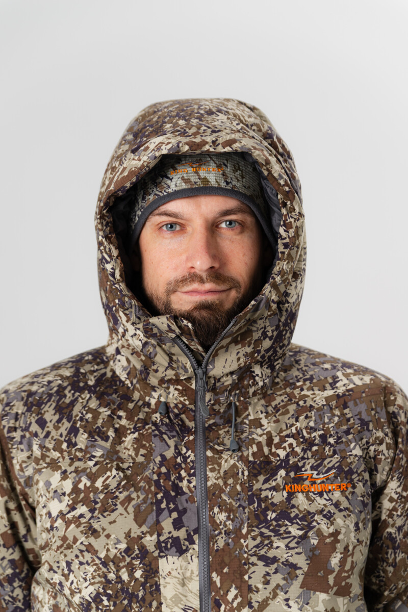 King Hunter Shelter — это самая теплая и при этом невероятно компактная пуховая куртка в коллекции бренда. Она создана для экстремальных условий: когда мороз, пронизывающий ветер и снег становятся серьезным испытанием, а охотник вынужден долгое время оставаться без движения (на номере или в засидке).