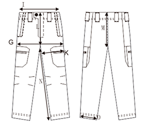 | Полуобхват штанины | K | 32 | 33 | 34 | 35 | 36 | 37 | 38 | 39 | |