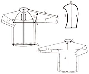 | Длина по спине | A | 72 | 74 | 76 | 78 | 80 | 82 | 84 | 86 | ![]() |